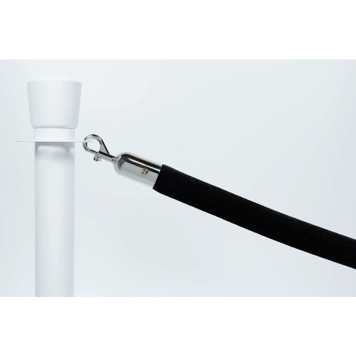 Dit afzetkoord is de ideale match voor de Afzetpaal Zwart Chroom. Samen vormen ze een strakke, monochrome en zeer exclusieve entree. De zwarte sluitingen vallen subtiel weg tegen de zwarte palen, waardoor het geheel één elegant en luxe geheel wordt. Een combinatie die vaak gekozen wordt voor moderne bruiloften en high-end gala’s.