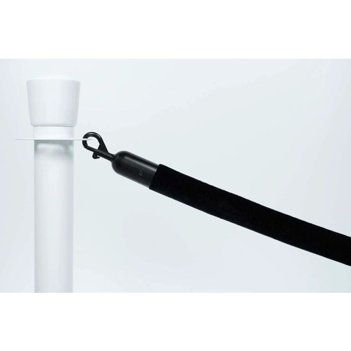 Dit velours afzetkoord is speciaal ontwikkeld om prachtig te combineren met zwarte afzetpalen. De matte zwarte sluitingen vallen mooi weg tegen de zwarte palen, waardoor het geheel één strakke, luxe lijn vormt. Het zachte, dikke velours-materiaal voelt rijk en premium aan en hangt mooi strak en vol tussen de palen. Geen glimmende of contrasterende details – puur zwart, rustig en zeer elegant. Dit maakt het de ideale keuze als je een moderne, minimalistische of high-end entree wilt creëren.